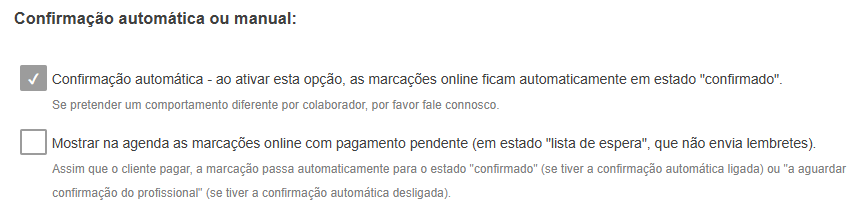 - Aceda a Definições » Marcações online » Confirmação automática ou manual