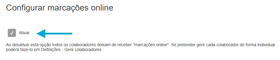 É possível visualizar as marcações online na perspetiva dos seus clientes. Para isso, basta seguir os seguintes passos: Aceda a Definições » Presença Online: Marcações Online; Na secção "Endereço direto de Marcações Online (Instagram):" clique em VER ...