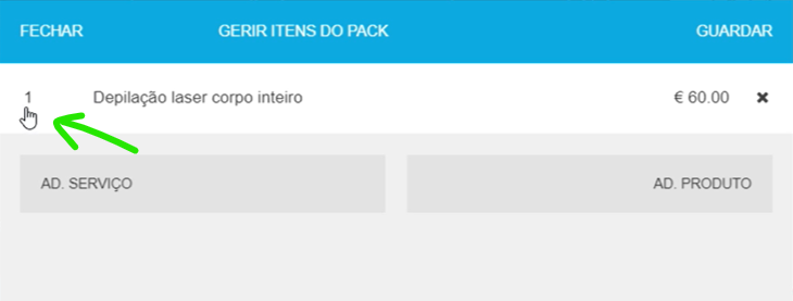 - Clique no número, à esquerda do nome, até perfazer o número total de sessões desse pack;