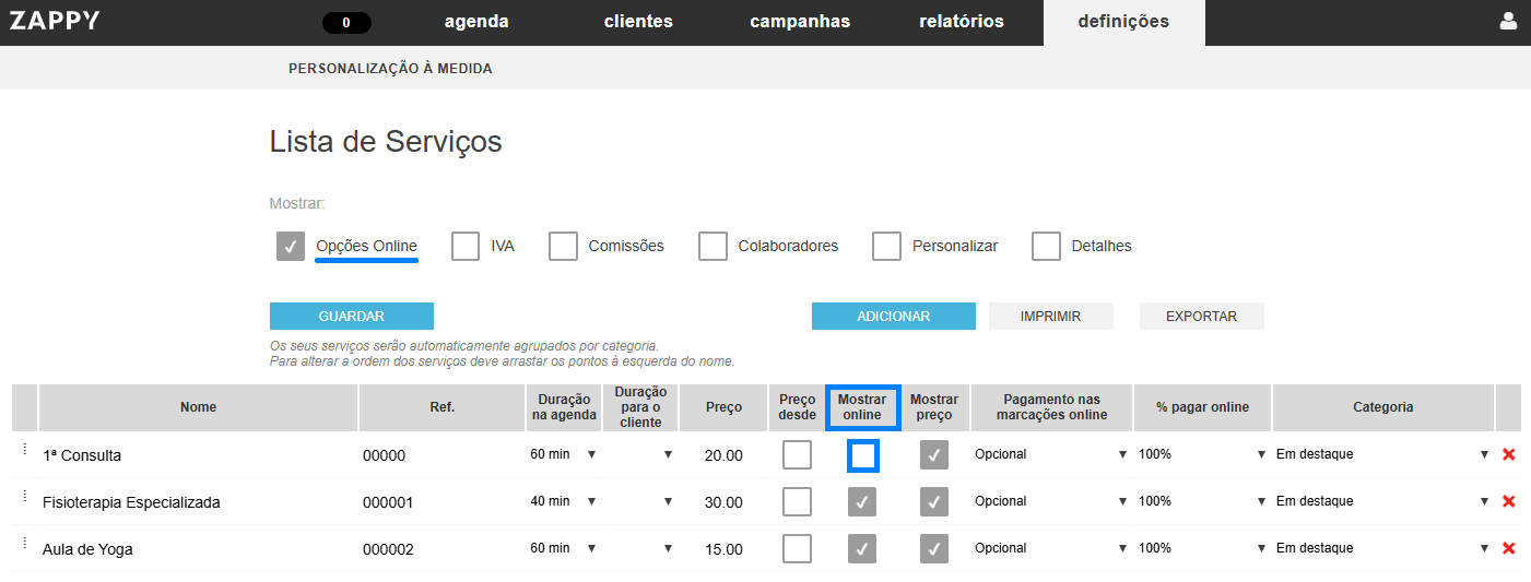 Pode escolher quais os serviços que pretende ocultar nas marcações online. Para isso, basta seguir os seguintes passos: