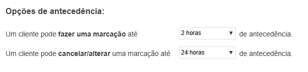 Pode ainda definir com quanta antecedência um cliente pode cancelar uma marcação.